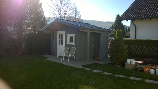 - Bohlenaußenmaß: 3,2 x 2,4 m