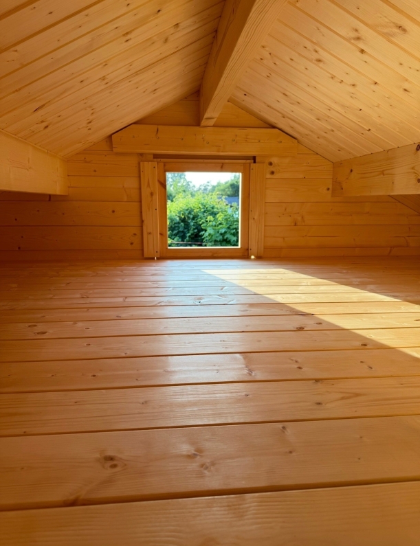 - Dachschalung: 21 mm, beidseitig sauber gehobelt
