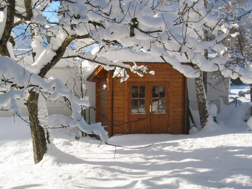 Ein solcher Geräteschuppen nach Maß kann hervorragend an Grundstücksgrenzen platziert werden, wo er (auch durch seine geringe Gesamthöhe) nicht zu mächtig im Vordergrund steht.
