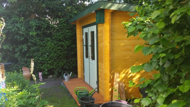 - Bohlenaußenmaß: 3,2 x 2,3 m