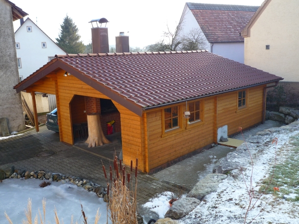 - Bohlenaußenmaß: 7,7 x 8,45 m